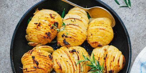 Klyftpotatis på bakpotatis som passar lika bra till fågel, fisk och kött som till en vegetarisk gryta.