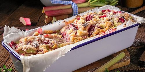 Rabarbertårta är den perfekt sötsaken att duka fram försommarens kalas. Extra fin blir den om du dekorerar med röda bär som jordgubbar och vinbär.