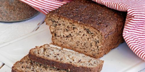 En kladdig deg som inte behöver knådas ger ett saftigt grovt rågbröd med linfrön och solrosfrön.