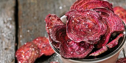 Chips på naturligt söta rödbetor är ett utmärkt snacks som du enkelt gör själv.
