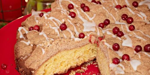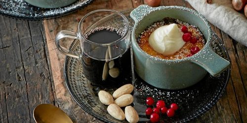 En mjuk saffranskaka med topping som smakar pepparkaka. Servera gärna med lingongrädde.