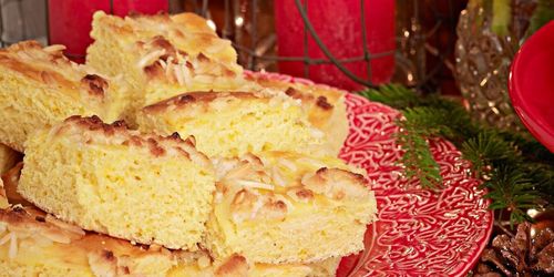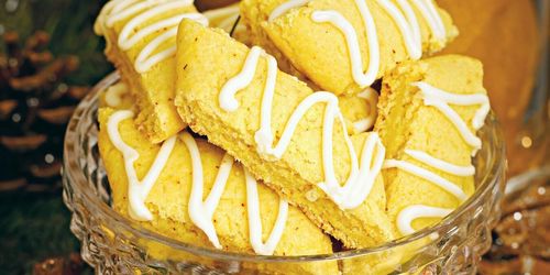 Byt de klassiska lussebullarna mot läckra saffransrutor toppade med ett täcke av smör och riven mandelmassa.
