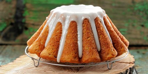 En mjuk saftig kaka med mandelmassa och saffran förgylls av en vacker glasyr.