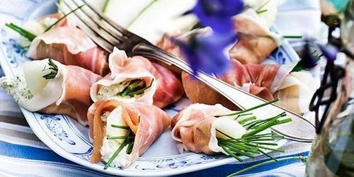 Melon och lufttorkad skinka är en klassiker som brukar vara ett säkert kort på buffébordet.