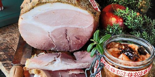 En saftig och god skinka som griljeras med ingefära, kryddpeppar och senap.
