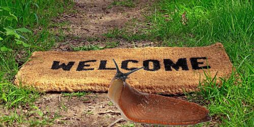 Välkommen? Knappast! En helt vanlig dörrmatta blir ett nytt, vasst vapen i arsenalen i striden mot mördarsniglarna.