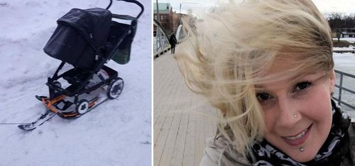 När Elin Wall i Umeå ledsnade på att dra barnvagnen på de nedsnöade och dåligt plogade vägarna löste hon och en kompis problemet på sitt eget sätt. Resultatet har hyllats i sociala medier.