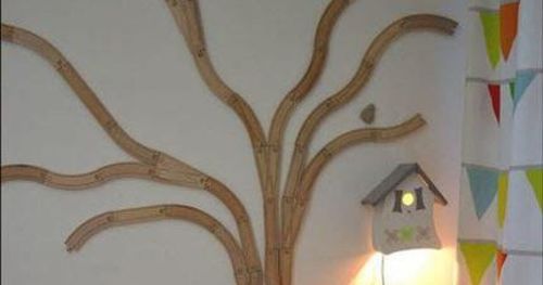 Snyggaste trädet i barnens rum skapar du av en tågräls. Testa först på golvet hur du vill ha din skapelse, sedan är det bara att börja sätta upp.
