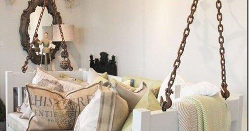 Här ska det gungas. En stadig gammal spjälsäng hängs upp i rostigt järnskrot.