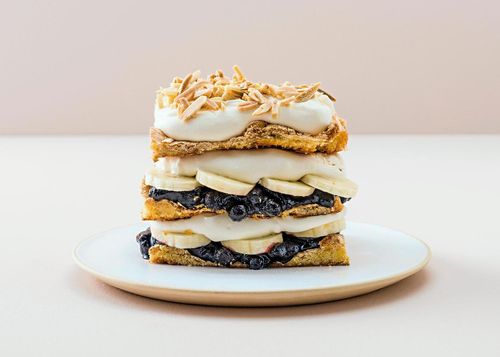 Detta är Tommy Myllymäkis favorittårta sen han var barn. Varva grädde, banan och blåbär på en lite seg, bakad sockerkaka med maräng. Jisses, så gott!