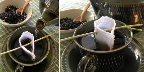 Sätt miljövänlig guldkant på testunden. Sy eviga tepåsar av tyg, häng på en kvist och slipp köpta tepåsar som aldrig multnar.