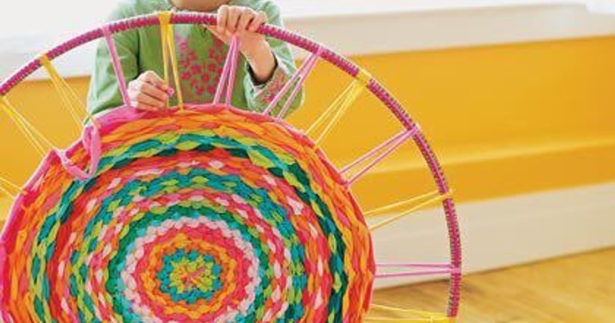 Med en rockring som ram är det enkelt att spänna upp en väv och skapa en färgsprakande och personlig matta!