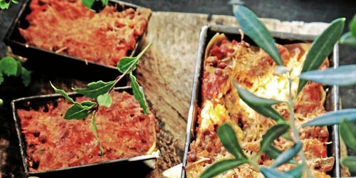 Lasagne går att variera i oändlighet. I det här receptet har lasagnen en tomatsås fylld med grönsaker och en béchamelsås på keso.