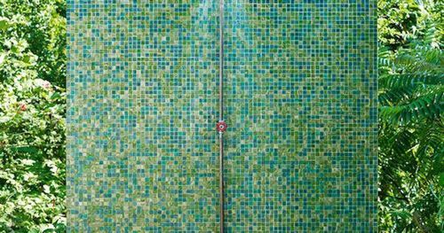 Trist betongvägg bakom uteduschen?Pixla den i grönt med skön mosaik.