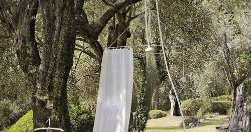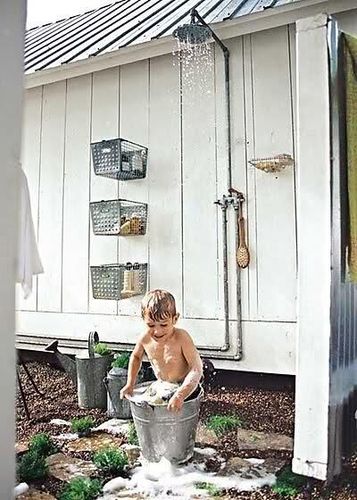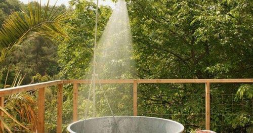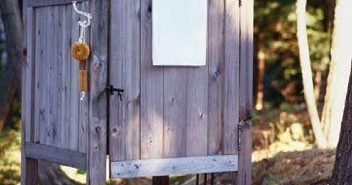 Skapa en utedusch i ett privat hörn täckt av grönska.