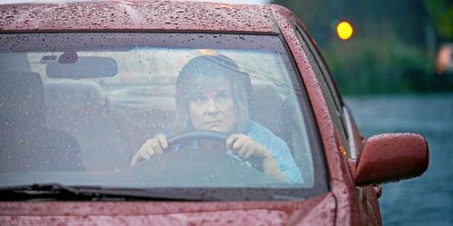 Bilen är inte en av de säkraste platserna när det blixtrar och dundrar ute. Det är bättre att vara inomhus.