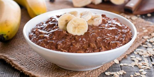 Chokladgröt med banan är en riktig önskefrukost. Toppa med yoghurt eller mandelmjölk och du kommer stå dig hela förmiddagen.
