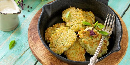 Variera middagen eller lunchlådan med vegetariska blomkålsbiffar och yoghurtsås.