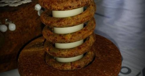 Fram med krattan. Vilken härlig kontrast med glimmande guld och pärlor mot den rustika rosten.