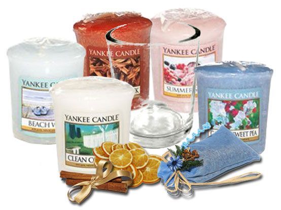 Paket med fem olika votivljus från Yankee Candle samt en fin ljusstake speciellt gjord för votivljus.