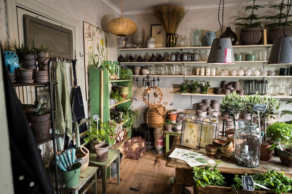 Vid sidan av ett fint sortiment av frön, lökar, perenner, grönsaksplantor, sommarblommor, krukor och engelska redskap rymmer butiken trädgårdsinredning av det lite udda slaget. Allt ska vara hållbart, slit- och släng är tabu, och dessutom bygger de just nu ett växthus för att själva kunna driva plantor till försäljning.