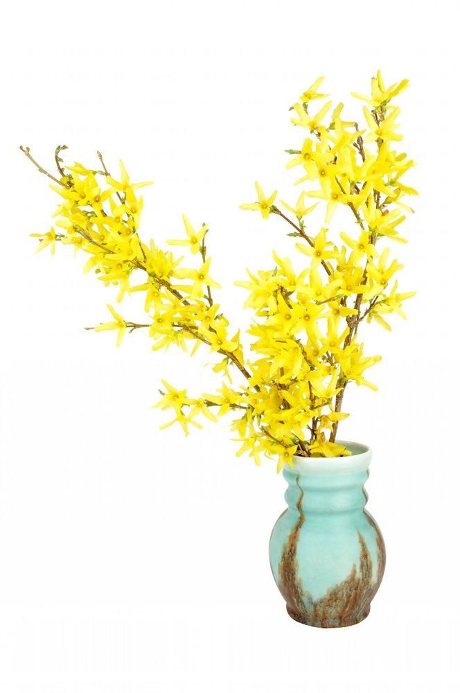 Knallgul klassiker som är väldigt lätt att driva inne. Välj fjolårsgrenar med tydliga knoppanlag, det finns skott som bara ger blad. Lägg grenarna i ljummet vatten några dagar först så slår de ut inom någon vecka.