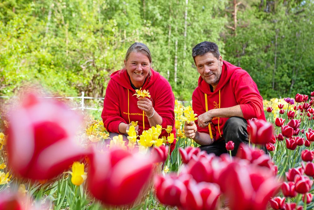 I Backsjön, tre mil utanför Sollefteå, i Västernorrlands län, ligger Farm Backsjö med Norrlands tulpaner. Ett hav av vajande tulpanklockor i granna färger omger oss.