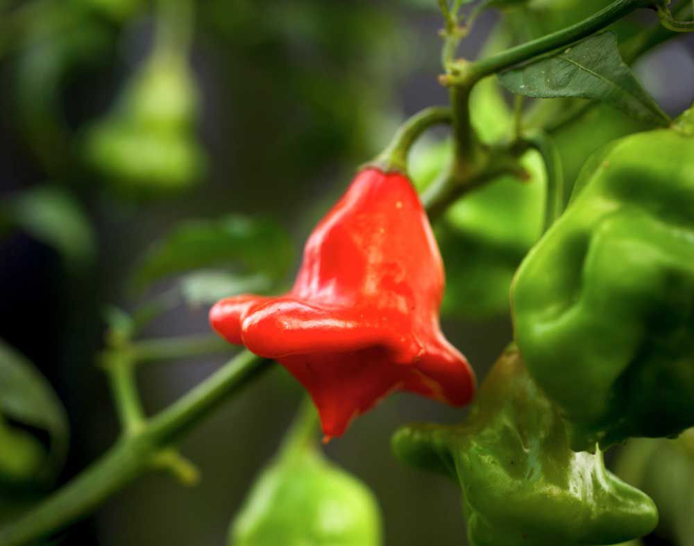 ’Jamaican Bell’. Från Brasilien kommer denna yviga buskliknande växt vars sfäriskt formade frukter har markerade lober. Fruktig och lätt citrusaktig smak med mild styrka. Frukterna mognar från grönt till rött efter 100 dagar.