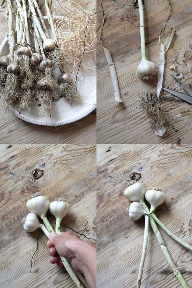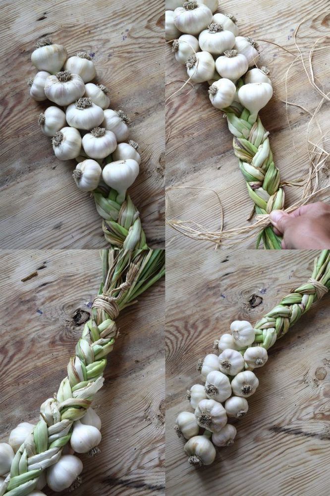 Vitlök ska förvaras luftigt och torrt så inget kan väl vara bättre än att fläta. Enkelt att hänga upp och fint på samma gång.
