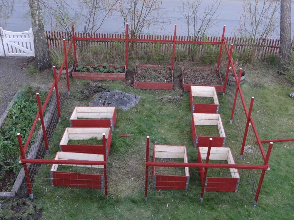 Hon kollade upp på nätet och läste att rådjuren inte vågar hoppa över stängslet om marken är rörig på andra sidan staketet. Därför placerade de lådorna 40 centimeter in, så rådjuren inte har tomma ytor att landa på.