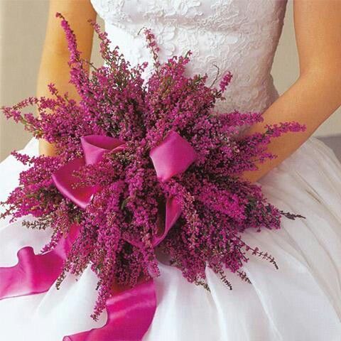 Till höstbröllopet kastar man naturligtvis en mix av lavendelblom och små rosa ljungblommor på brudparet.