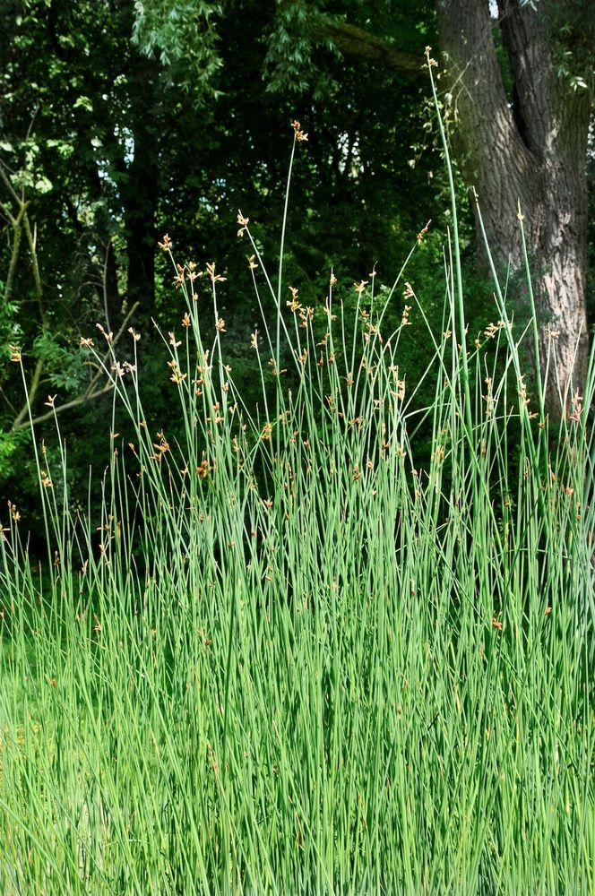 Tillsammans med säven sätts också gul svärdslilja, en ståtlig vattenrenare med vackra blommor.