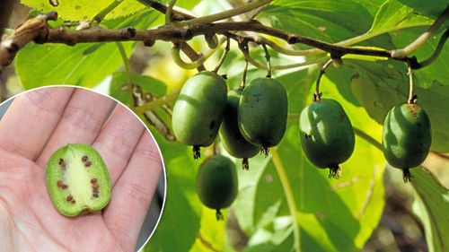 Visst går det att odla kiwi i Sverige men inte den stora, håriga varianten. Det handlar om en miniversion av kiwi, slät i hyn och stor som ett krusbär.