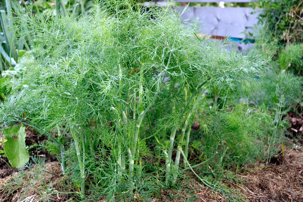 Jag tar helt enkelt en näve dillfrön och strör ut glest i en bädd där det redan står andra grönsaker. Dillen trivs bland sina grannar tidigt på säsongen och växer betydligt bättre än i de prydliga rader jag tidigare sått. Skörden blir stor och räcker både till smörgåsar och infrysning. Det fina med dill är att den går att skörda flera gånger. Lämna en 5 centimeter lång stump av stjälken så växer det ut en ny stam.