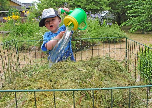 Du behöver en grep, ett kompostgaller, vatten och en hel massa gräsklipp.