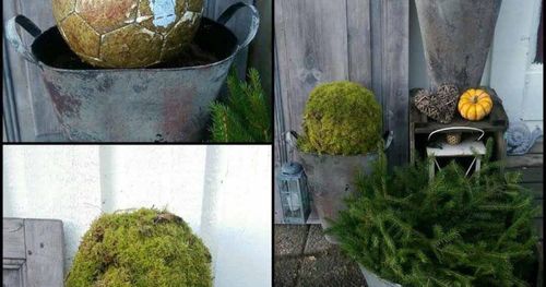 Klä in gamla uttjänta fotbollar med mossa, det blir jättefina dekorationer utomhus! Så här gör läsaren Petra de här fina bollarna.