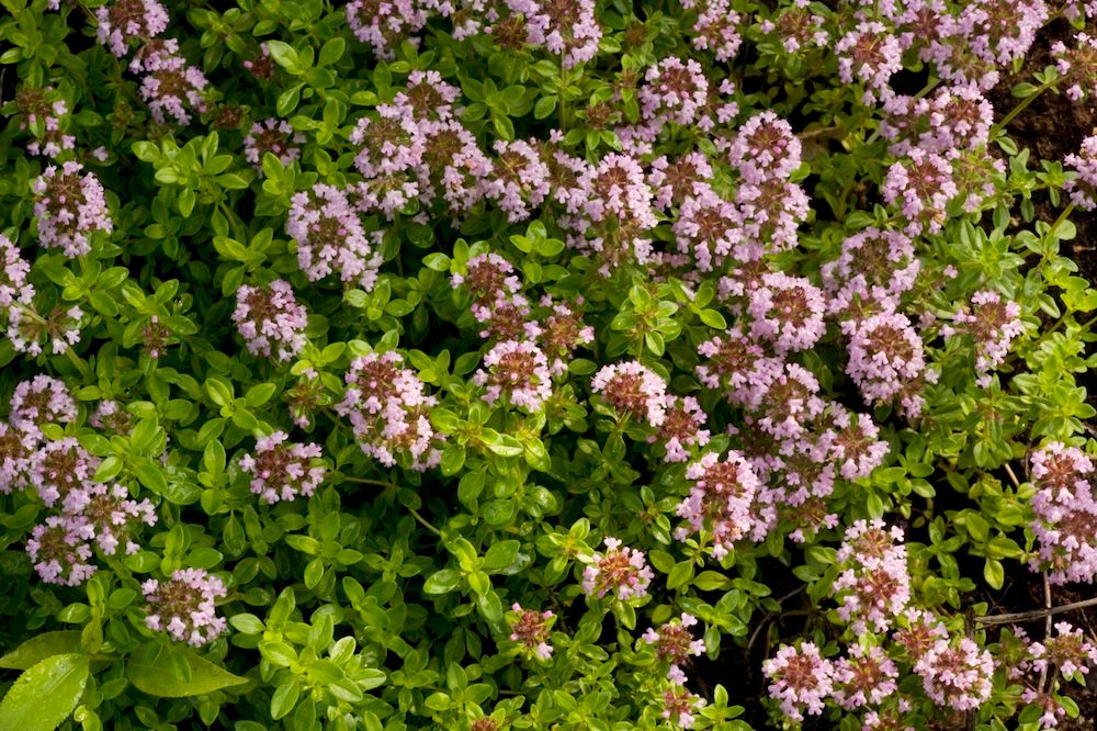 En stadig marktäckare för kryddlandet. Den brer ut sig, är lätt att torka för vintern och lockar bin med aromatiska blommor. Klarar vintern i södra halvan av landet.